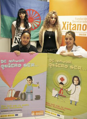 Ni Merche, de 29 años, ni Esmeralda, de 32, ni siquiera Loli, de 20, o Nazaterh, de 19, estudiaron más allá de los 11 o 12 años. Abandonaron sus estudios al acabar la educación primaria, jamás se matricularon en secundaria —a pesar de ser obligatoria— y desde ese momento se dedicaron en cuerpo y alma a la venta ambulante, el negocio familiar. Todas nacieron y se criaron en Santiago, donde viven todavía, y se felicitan porque las sobrinas y a las hermanas pequeñas encontrarán el camino de la educación superior más despejado. Son gitanas y parte de un colectivo, Kalis de cibo (Gitanas de hoy, en romaní) que renace en la sede de la Fundación Secretariado Xitano de Santiago después de años de parálisis. Cada dos semanas celebran el Café para todas, encuentros supervisados por una mediadora en los que las participantes intercambian consejos sobre salud, alimentación o educación. Con estas jornadas, intentan que las niñas no dejen sus estudios en plena infancia — ni que los padres las animen a hacerlo— y que el matrimonio precoz no sea el único destino de su vida adulta. Solo el 20% de los niños gitanos abandona el instituto con el título de la ESO bajo el brazo, según la propia Fundación Secretariado Xitano.